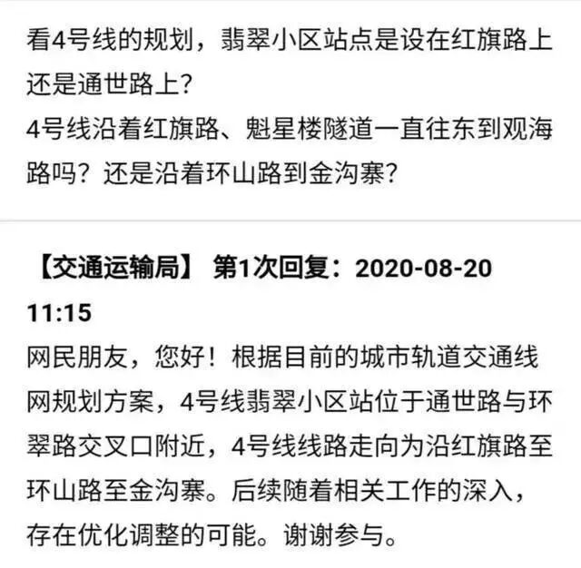 比如地铁4号线,地铁4号线是一条西接蓬莱机场东到芝罘海岸的的超长地铁线路。在近期网友的提问中,就可以看出相关部门对4号线的一些优化。