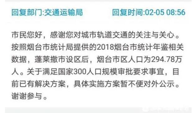 从9月15日,烟台交通运输局回复网友的留言中可以看出,国家对轨道交通审批加紧,自2018年52文发布至今,不论是地铁还是轻轨,都没有批复新的城市,烟台城市轨道交通相关前期工作一直在积极稳步推进,一直在积极争取尽早上报并获批。