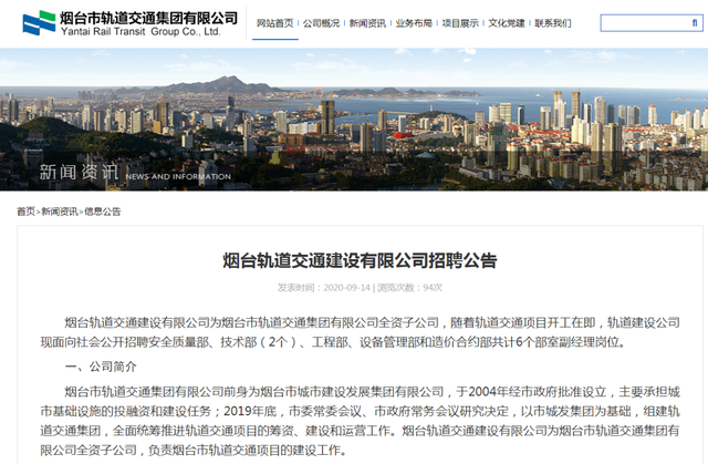 看来轨道交通集团招聘是轨道交通前期准备的一部分。烟台市为地铁能获批,正做着大量准备工作。