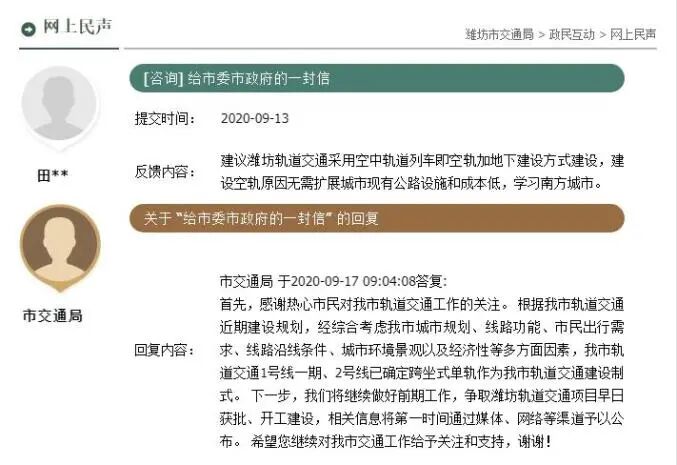 关于我市轨道交通如何建设9月17日,市交通运输局在回复网友提问时表示