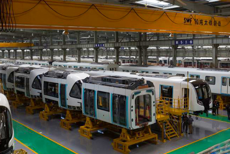 图为武汉中车长客轨道车辆公司生产车间。