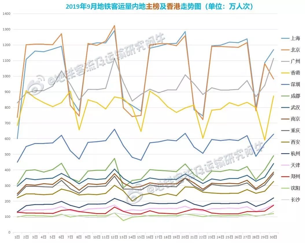 2019年9月中国主要城市地铁客运量统计