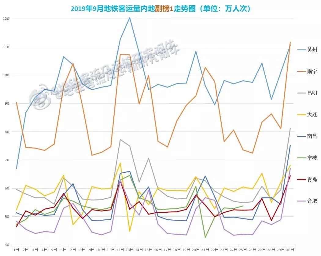 日均客运量>50万:苏州、南宁、昆明、大连、南昌、宁波、青岛7家;