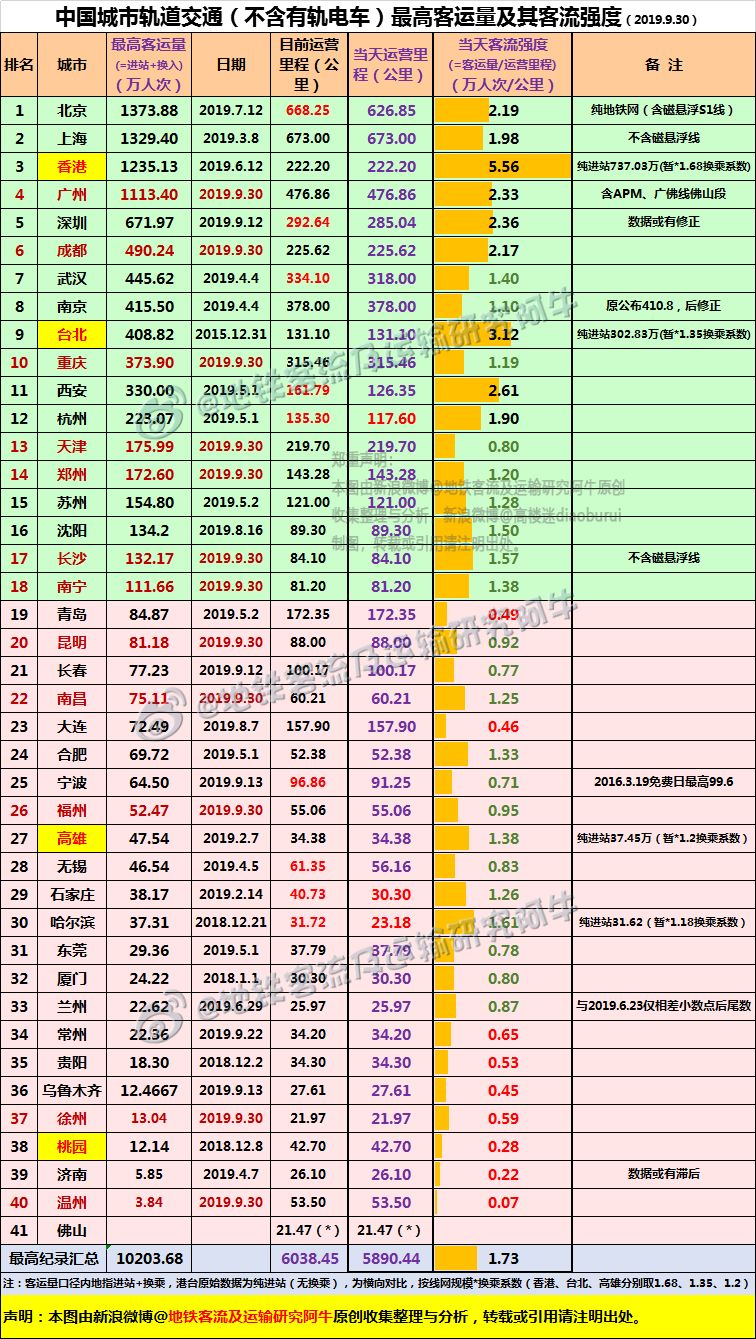 (声明:本文由新浪微博@地铁客流及运输研究阿牛 独家数据整理与原创分析点评,图表数据由新浪微博@高楼迷diaoburui 整理制图, 未经授权不得用于网站与公众号等商业用途转载,普通非商业用途转载请注明出处,图文数据等严禁盗用与洗版)
