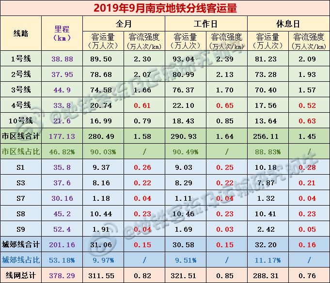 (1)南京地铁市区线路5条,城际或称城郊区线路S线5条,前者是真正意义上的地铁线路,后者从工程立项上虽不叫地铁,但无论是制式、运营主体、与地铁网的关系(地铁制式、与地铁网同网无障碍换乘,同归地铁公司运营),亦可理解为通俗意义上的“地铁”。但客流量级上有明显的差距,而平均运距相对要长(无具体数据,但从其它城市线路数据及从常理可知)。