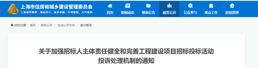 各区建设管理(交通)委,市招标投标办,其他有关单位:为保护国家利益、社会公共利益和招投标当事人的合法权益,更加公平、公正、高效地处理本市工程建设项目招标投标活动投诉,现将加强招标人主体责任,健全和完善投诉处理机制的有关事项通知如下:一、本通知所称的投诉,是指投标人或者其他利害关系人认为工程建设项目招标投标活动不符合法律、法规和规章规定,向本市建设工程招投标监管部门提出相关请求和主张的行为。所称其他利害关系人是指投标人以外的,与招标项目或者招标活动有直接和间接利益关系的法人、其他组织和自然人。非利害关系人举报违法行为,提供了有效线索和证明材料,符合行政处罚立案条件的,招投标监管部门应当立案查处;实名举报的,招投标监管部门应当按照信访要求进行答复。二、投标人或者其他利害关系人对招投标活动提出异议和投诉的,分以下三种情形:(一)对招标文件和资格预审文件、开标、评标结果等事项的异议,应当按照《中华人民共和国招标投标法实施条例》规定进行。(三)对其他事项的投诉,未先向招标人提出异议的,可以直接向招投标监管部门投诉。收到投诉的招投标监管部门,在投诉受理前,可以责令招标人核查。招标人核查的时间不计入投诉处理时限。三、招标人收到异议和责令核查事项后,应当进行全面、客观、公正的核查,作出书面答复;作出答复前,应当暂停招标投标活动。书面答复应当经其法定代表人签字并加盖单位公章,不得委托招标代理机构作出。对责令核查事项的答复应抄送招投标监管部门。对评标结果的异议,招标人经核查认为影响中标结果的,在与可能中标的投标人就补偿相应投标成本损失达成一致并补偿后,可以选择重新招标。重新招标时,原投标人均不得参加投标。因其他情形而进行的重新招标,依照招标投标法律法规有关规定。对招标人书面答复不服的,投标人或者其他利害关系人应当在收到答复之日起10日内向负责该招标项目监管的招投标监管部门提出投诉。四、投诉受理后,招标人应当向招投标监管部门提交异议和责令核查事项的核查情况、答复情况的书面说明。异议和责令核查事项涉及串通投标的,招标人还应提交未参与围标串标的书面承诺。书面说明和承诺应当经招标人的法定代表人签字并加盖单位公章。投诉处理过程,招标人的单位负责人和其他相关人员应当接受询问,配合调查。五、涉案当事人积极配合调查,主动供述本人违法行为的可依法予以从轻处罚;提供招标人或其他当事人涉嫌违法行为有效线索和证明材料经查实的,可依法予以减轻处罚。串通投标涉案投标人,在中标结果确定前提供其他招投标当事人以下违法行为的有效线索和证明材料并经查实的,其违法行为可不予行政处罚,但涉案投标人组织串通投标或者串通投标情节严重的除外:(一)招标人、招标代理机构透漏、泄露应当保密的招投标情况和资料,收受投标人好处,或者与投标人串通投标。(二)评标委员会成员、参加评标的有关工作人员透露评标相关情况,或者收受投标人好处。六、当事人在接受调查的过程中主动供述本人违法行为、他人违法行为经查实的,在向社会信用管理部门申请信用修复时,招投标监管部门可以为其出具积极整改的相关证明。七、投诉人以投诉为名排挤竞争对手,进行虚假、恶意投诉,阻碍招标投标活动的正常进行,故意捏造事实、伪造证明材料或者以非法手段取得证明材料进行投诉的,经查实后,按照《上海市建筑市场信用信息管理办法》(沪住建规范联〔2018〕8 号)认定为建筑市场B级不良信用信息。八、投诉受理后,招投标监管部门发现招标人对收到的异议和责令核查事项核查不客观、不公正的,将有关情况抄送招标人同级或其上级单位党组织、纪检监察组织。九、串通投标和招标人违法行为的行政处罚信息,招投标监管部门与相关纪检监察组织实现共享,并将行政处罚决定书抄送招标人及其上级的党组织。根据招标投标法律法规规定应当对有关责任人予以处分的,相关部门应当予以处分;违法行为情节严重的,其上级单位负责人未尽责履职的,相关部门还应依法依规追究有关人员责任。十、招标人组织的招标项目多次发生投诉的,招投标监管部门可将有关投诉情况抄送招标人上级纪检监察组织、财政部门、审计机关等,建议相关管理部门在后续工程实施过程中加大监督力度。十一、调查处理过程中,发现招标人有关人员有违纪、违法的问题和线索的,招投标监管部门将有关情况移送相应的纪检组织、监察机关或司法机关。