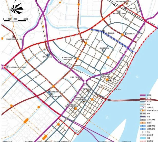 铁路:规划保留京沪铁路、津浦铁路战备线、大桥四处铁路专线。水运:规划朱家山河为等外级航道;规划水运设施1处,即浦口码头。规划区内城市道路分为快速路、主干路、次干路、支路4个等级,路网密度为8.4公里/平方公里。规划区内规划轨道交通5条,分别为轨道交通11号线、15号线、18号线、宁天城际等。
