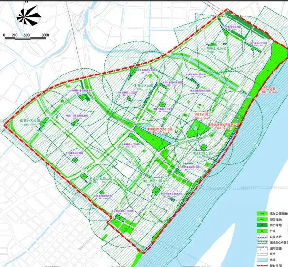 规划城市公园4处,即滨江公园、津浦铁路英式仓库群公园、浦口公园、津浦铁路文化公园;社区公园6处,即津浦社区公园、大桥华工社区公园等;基层社区游园1 6处,即新马路基层社区游园等。面积大于等于5000平方米的公园以500米为服务半径覆盖的居住区面积与总居住区面积的比率不小于90%
