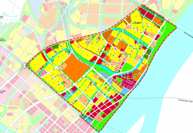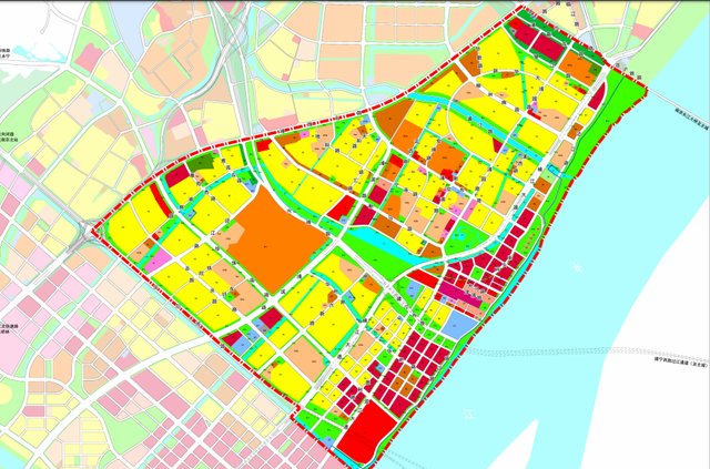 结合《南京浦口火车站片区城市更新工程总体城市设计》对横江大道以东滨江片区、规划新马路地铁站周边片区进行用地布局调整,并结合公共服务设施校对、道路工程选线、水系优化贯通等对规划区内用地进行整体优化。规划区内城市建设用地由.上版控规11.57平方公里调整为11.54平方公里。