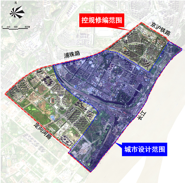 浦口火车站片区位于南京历史文脉和跨江发展战略的交汇处,是江北新区践行“一江两岸”,迈向拥江发展的重要展示窗口。为了重塑百年老火车站新地标,彰显长江沿岸后工业化改造新风范,实现历史文化延续和现代城市发展共融的目标,江北新区规划和自然资源局组织编制了《南京浦口火车站片区城市更新工程总体城市设计》、《南京江北新区浦口火车站片区控制性详细规划修编》项目(合并简称为南京江北新区浦口火车站片区城市设计及控规修改)。基地位于江北新区中部,南靠长江,西接江北CBD,北望老山,东临高新区。城市设计范围:浦珠路、横江大道以东,朱家山河以南,长江以西,定向河、规划兴浦路以及涵盖长江大桥至定向河的滨江岸线区域,总面积约6.7平方公里。控规修编范围:考虑配套设施系统性、单元图则完整性,控规修编范围东至京沪铁路,西至定向河路,北至浦珠路,南至长江,总面积12.06平方公里。