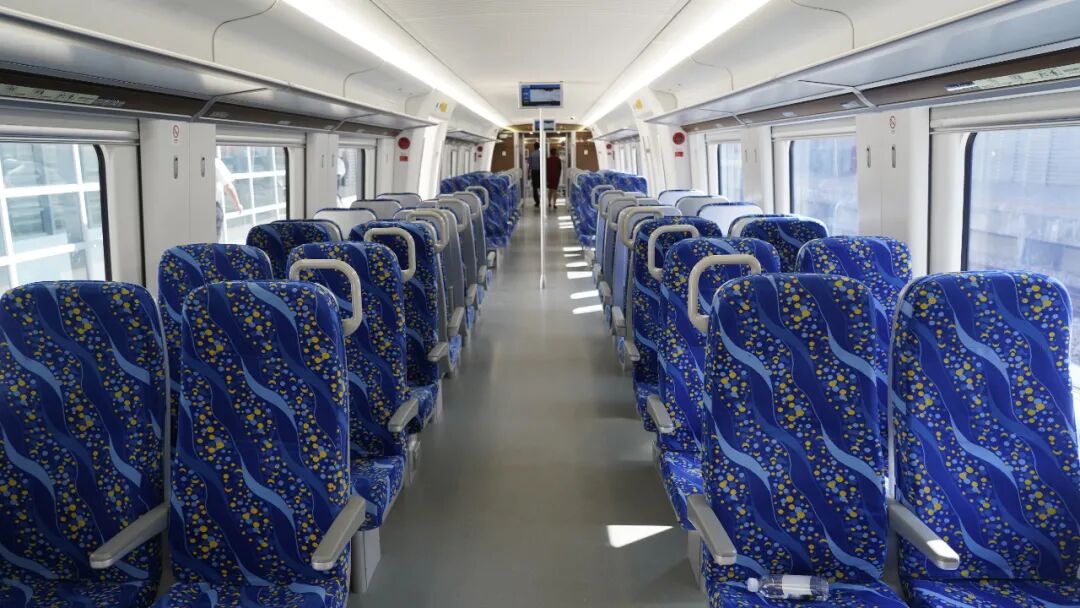 列车采用4辆编组,座椅为“2+2”布置,每排4个座位,车内空间非常宽敞。