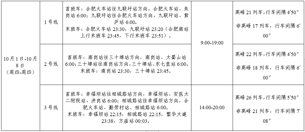 国庆节、中秋节假期,合肥轨道交通行车调整