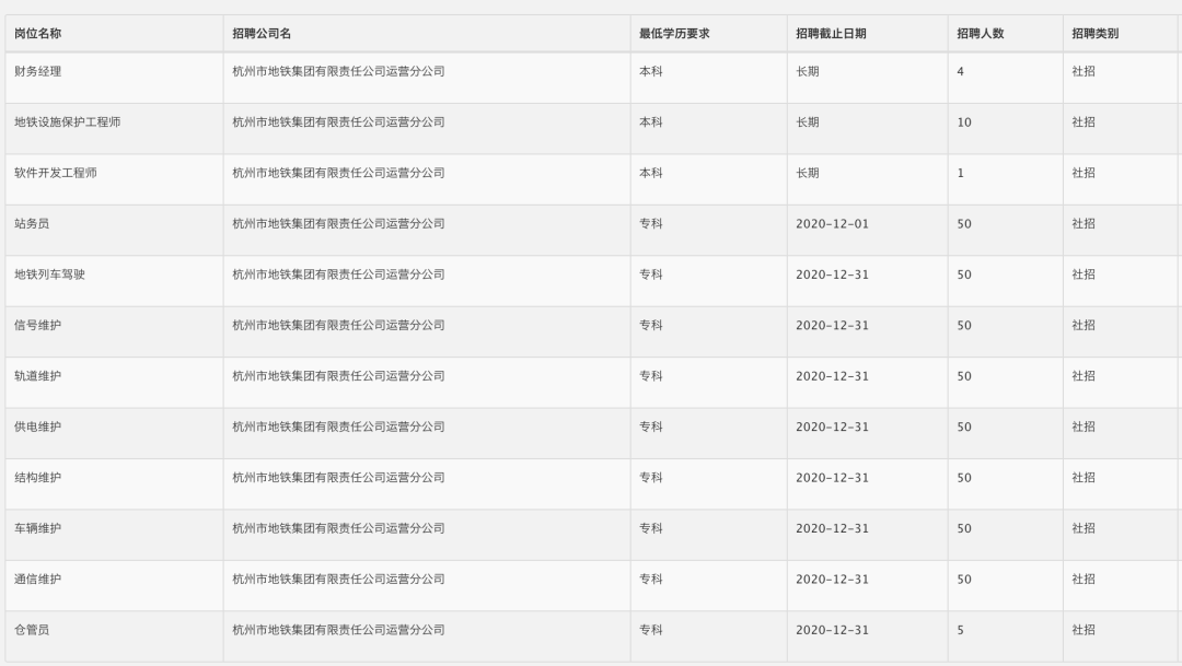 杭港地铁最新招聘岗位