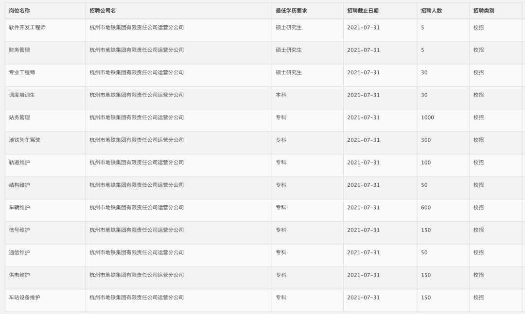 杭州地铁招聘公告