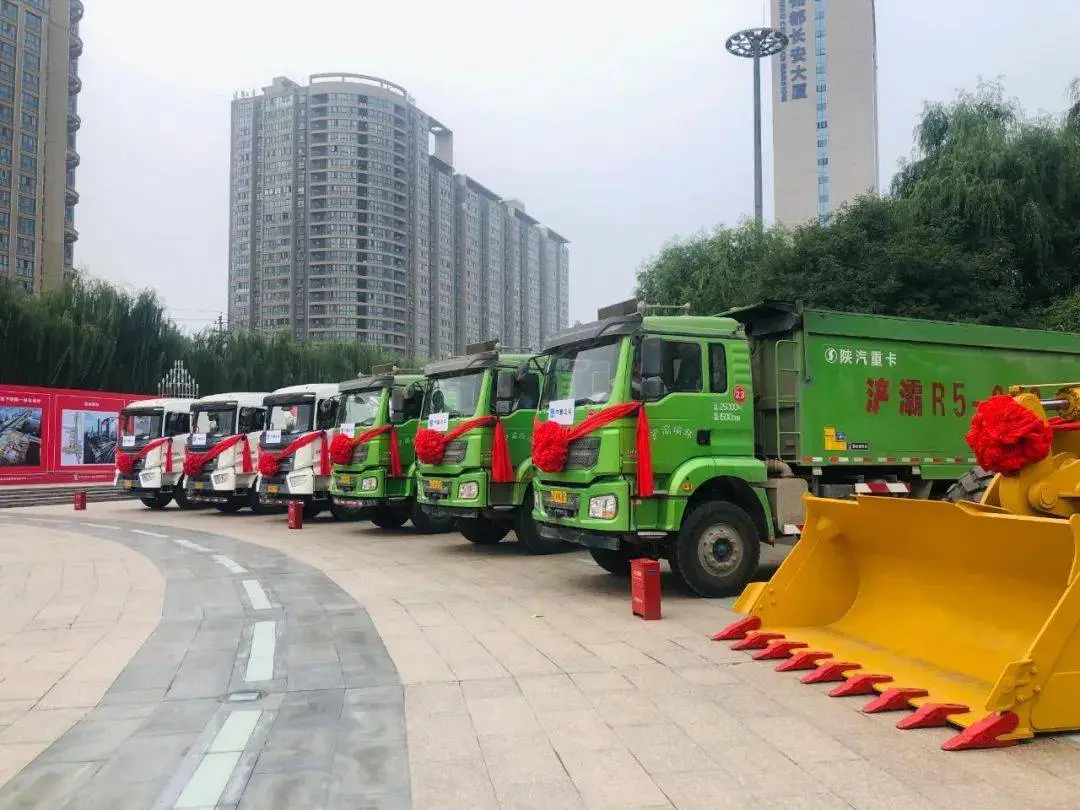 早上9时许,记者看到现场20余辆重型机械车系着红飘带围成半圆,矗立在长安广场。伴随现场设备同步鸣笛,西安地铁15号线一期工程开工仪式举行,围观的群众纷纷用手机拍下这具有纪念意义的时刻。