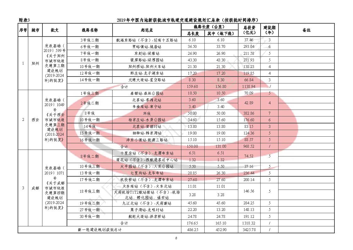 新增405.35公里!2020年前三季度中国内地城轨交通线路一览