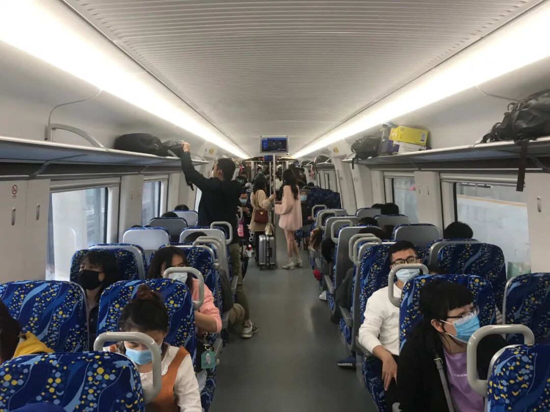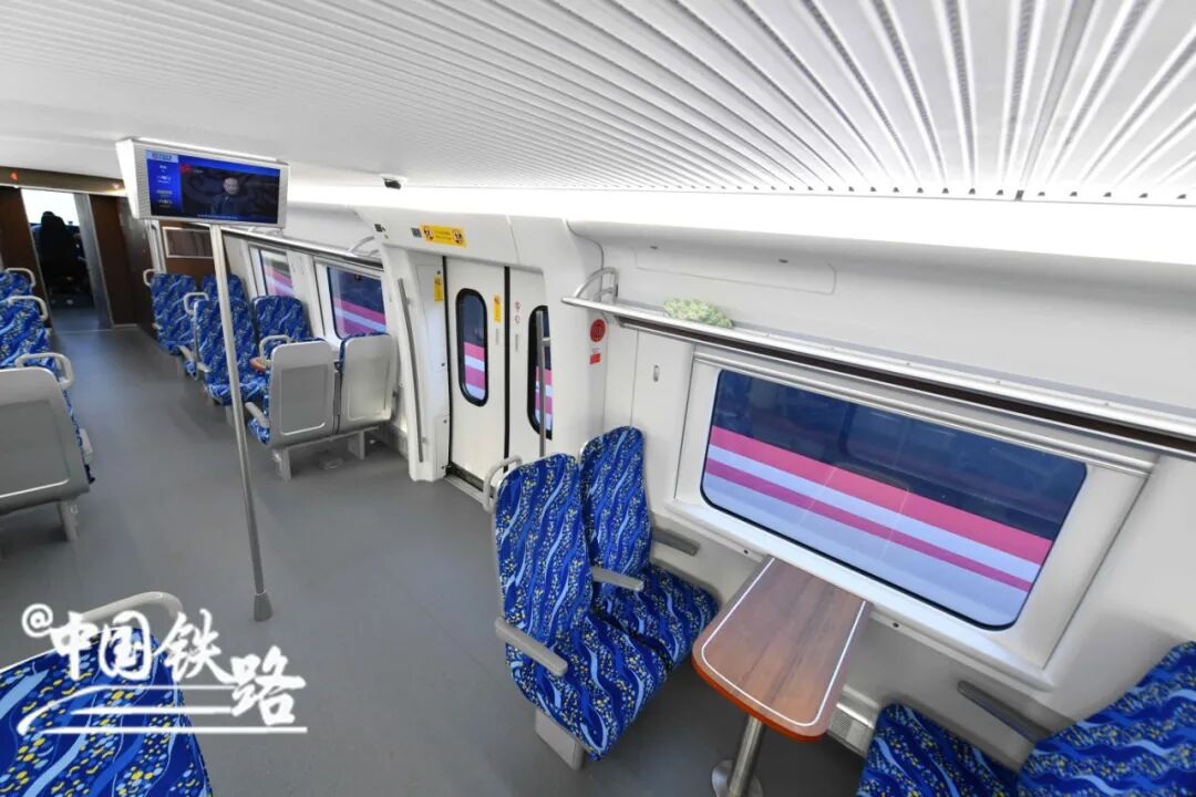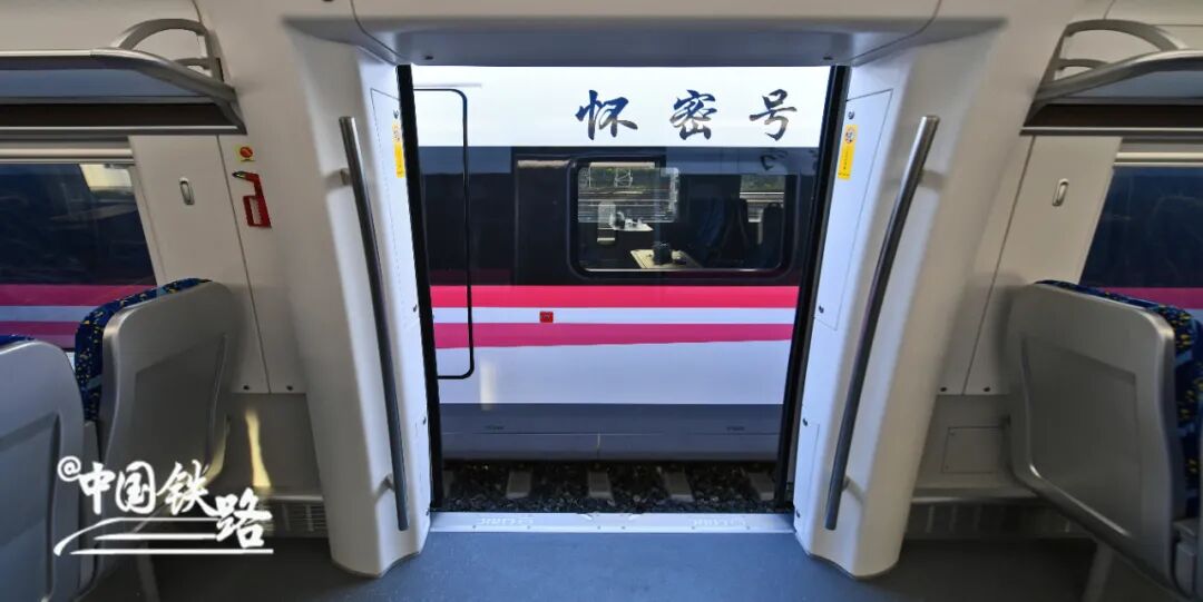 “怀密号”采用高强度车体、大轴重转向架、大容量空调、座员与站客结合的车内布局等适应性技术,列车的载客能力大大提高。采用四辆编组,座椅以“2+2”方式布置,每排设置4个座位,车厢非常宽敞。全车设座席226个,额定载客量643人,最大载客量达854人。载客能力可与8辆编组的干线动车组媲美。座椅布局有同向的,也有对向的,对向座位间设有小桌板,方便乘车办公以及家人朋友一起出游时休闲聊天。车体、空调、风挡等系统的设计保证客室有充足的新风量和较小的车内压力波动,乘坐舒适。车厢内配备Wi-Fi,座椅旁边设有充电插座,为乘客提供便利。车内还增设了无障碍卫生间,为有特殊需要的旅客提供暖心服务。“怀密号”采用了大开度双开车门、大开度车端通道、大宽度客室走廊等设计方案,保证了车内通行和上下车的顺达和通畅。列车侧门净开度达到1.3米,并采用安全可靠的双开电动塞拉门,能够满足旅客在短时间内上下车的需求。针对持续高速、快速起动的运营要求,车辆提升了牵引性能,有效缩短了加速时间和加速距离。制动系统满足快速频繁停车的要求,制动时间和制动距离更短。快起快停,随心所欲。列车具备实时温度监控、EOAS、受电弓视频监控、停放制动、撒砂装置、BP救援等功能,并增设了车载故障自诊断系统(PHM),通过车地无线传输系统地面指挥中心实时对车辆运用故障进行远程诊断及处置,大大提高了车辆的运用效能和安全性。采用轻量化设计,能耗低,人均能耗小于1度电/百公里;最大限度利用再生制动,制动能量回馈电网;采用真空集便系统,实现了废水污物零排放。怀密线引入北京北站后,加强了昌平新城、怀柔科学城与中心城区的快速轨道交通联系,让沿线通勤族多了一种出行选择。除了通勤,怀密线沿线风景优美,不仅有绿水青山相伴,还可欣赏到雁栖湖国际会展中心、北京印和密云水库等著名景观。沿线旅游资源分布丰富,有蟒山国家森林公园、明十三陵、慕田峪长城、雁栖湖、红螺寺、青龙峡、云蒙山、黑龙潭、桃源仙谷、古北水镇等多个景区。