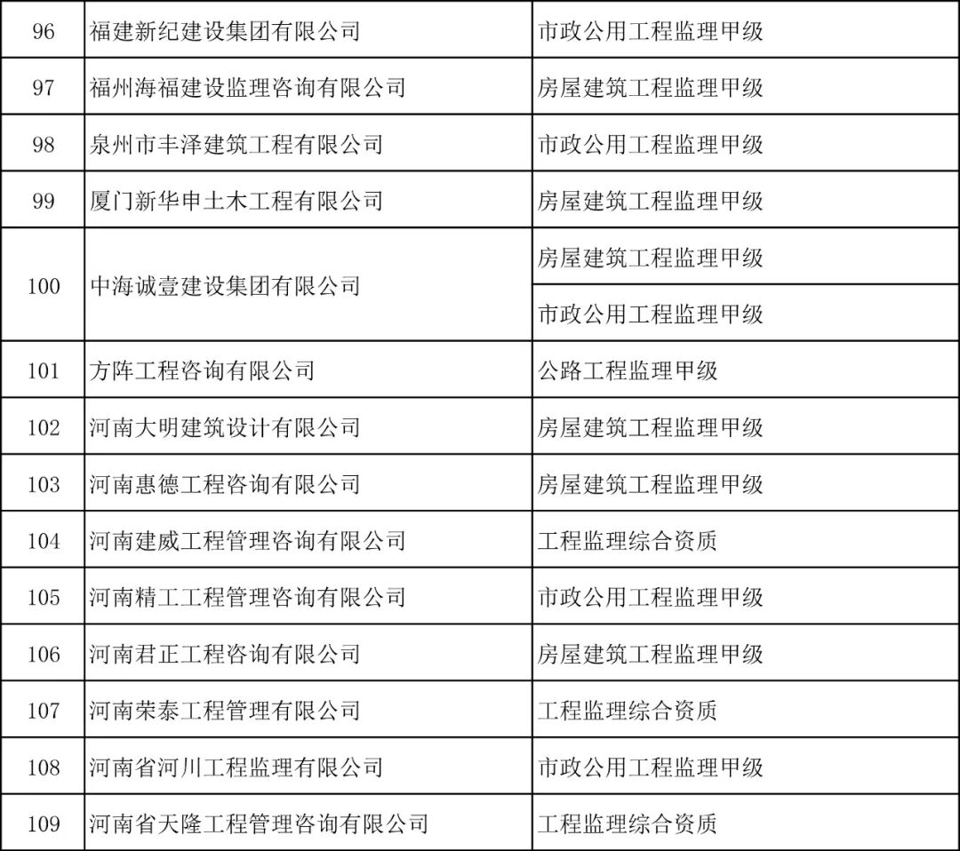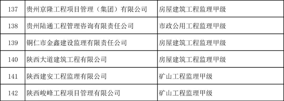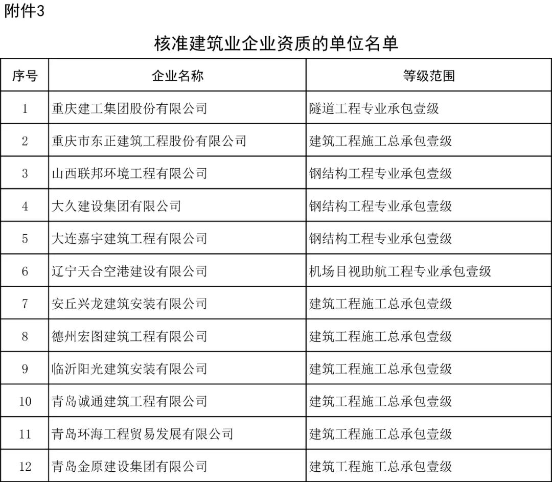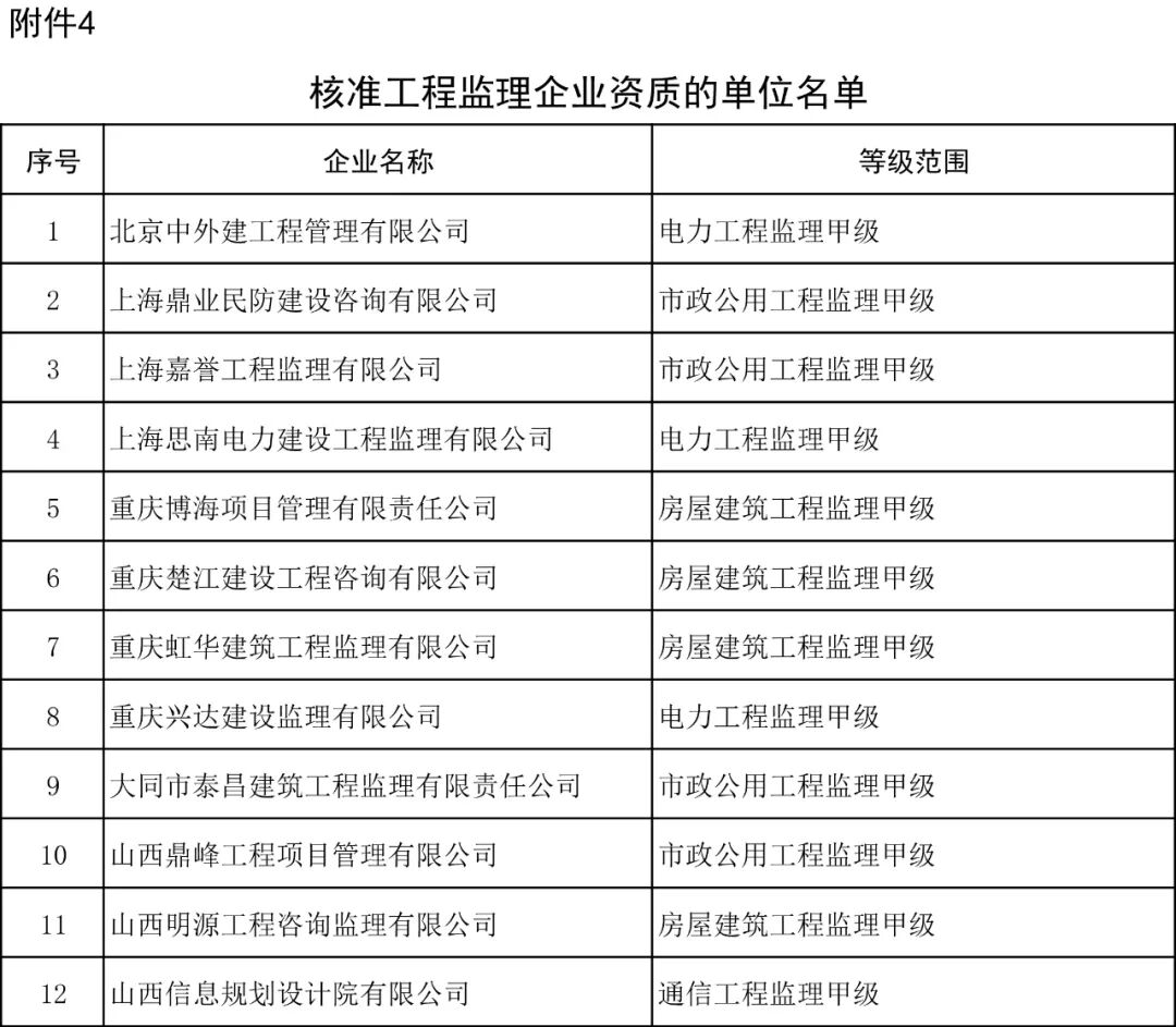 根据《中华人民共和国建筑法》及有关建设工程企业资质管理规定,现将我部核准的工程勘察资质、工程设计资质、建筑业企业资质、工程监理企业资质的单位名单予以公布。未予核准的单位及原因可登录国家政务服务平台住房和城乡建设部政务服务门户,点击办事服务中“申请事项办理进度查询(受理发证信息查询)”栏目进行查询。
