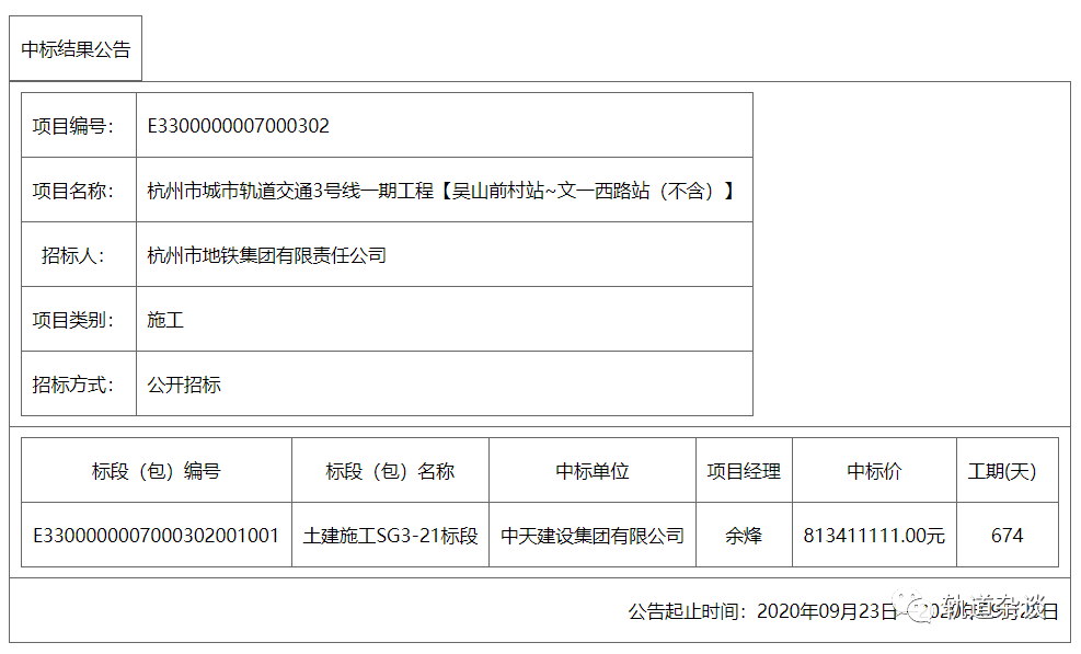 14亿!杭州地铁3号线一期工程土建施工标段中标