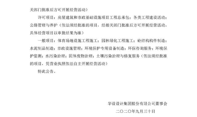 华设设计集团股份有限公司(原“中设设计集团股份有限公司”,以下简称“公司”)于2020年9月17日召开2020年第二次临时股东大会,审议通过《关于变更公司名称并相应修改<公司章程>的议案》,具体详见公司于2020年9月18日在上海证券交易所网站(http://www.sse.com.cn)披露的相关公告(公告编号:2020-055)。根据股东大会决议,公司向江苏省市场监督管理局申请工商变更和换发《企业法人营业执照》。