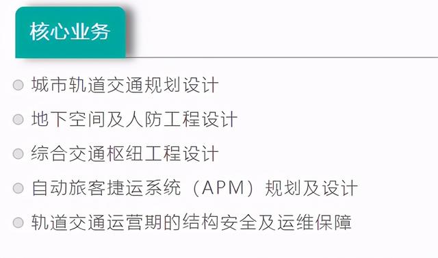 中设设计集团含综合规划研究院、交通设计研究院、水运设计研究院、城建规划设计研究院、铁道规划设计研究院、环境与智能事业部、工程管理与检测事业部等七大业务板块,提供从战略规划、工程咨询、勘察设计到科研开发、检测监测、项目管理、专业施工、后期运营等全寿命周期的一体化解决方案。