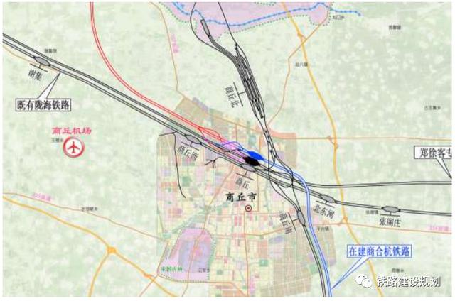 规划京雄商高铁雄商段与商合杭铁路在商丘站贯通作为京港台通道重要组成部分,商合杭铁路已经预留京雄商高铁引入条件,京雄商高铁正线及北东联络线临靠、跨越既有铁路路基、桥梁工程已经同步实施,京雄商高铁引入既有商丘站商合杭场。