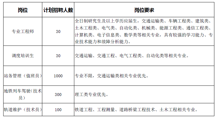 根据公司发展和运营筹备需要,杭州地铁运营分公司面向全国院校招聘以下岗位: