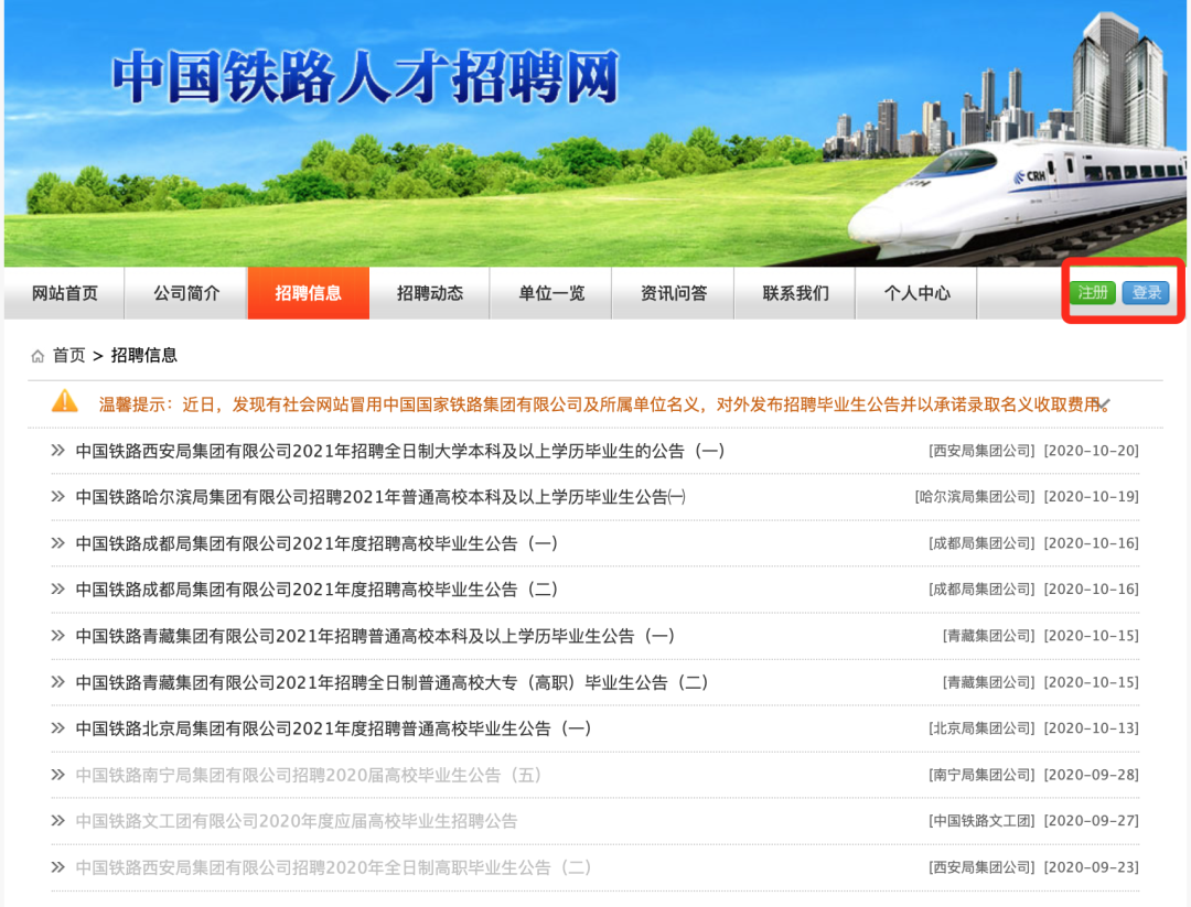 铁路局校招时间一般在每年9-12月之间集中招聘,还是次年3-8月则是补充社招,岗位就相对少很多了。铁路局报名基本上在中国铁路人才招聘网上报名,也有部分铁路局有两个渠道报名,除了铁路人才网,还有就是他们自己单独的网站。中国铁路人才招聘网报名如何操作呢?接下来小编就为大家梳理了详细报名流程,希望能给大家以帮助。