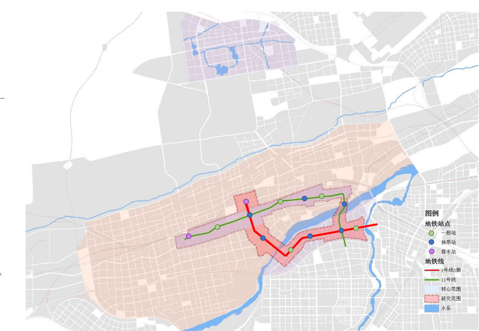 研究区域:地铁1号线三期、11号线沿线向外扩展,总面积约21平方公里。