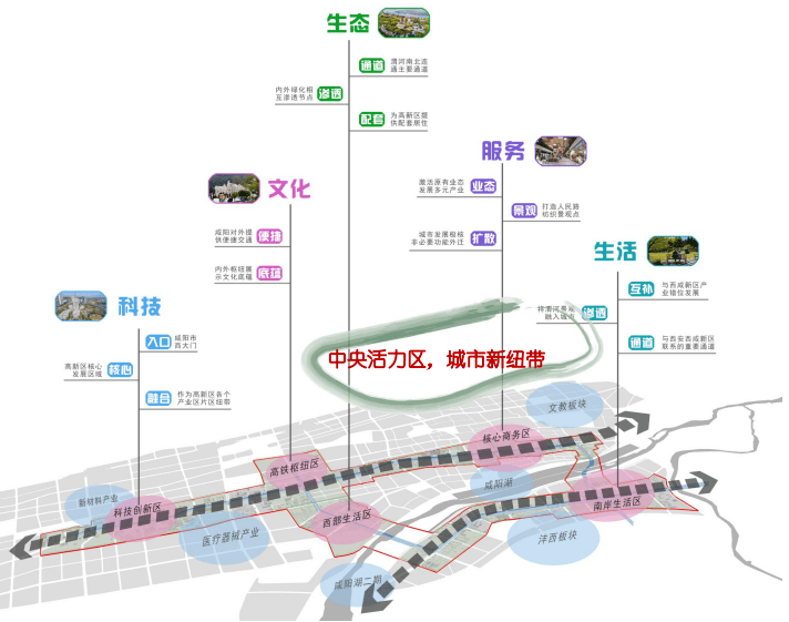 按照咸阳的规划思路,将根据现状评价以及城市发展需求,以地铁1号线三期和11号线建设为契机,将规划区定位为咸阳承东启西、南北衔接、带动咸阳经济发展的城市核心区,体现以生态、文化、服务、科技、生活为主题的“中央活力区,城市新纽带” 。