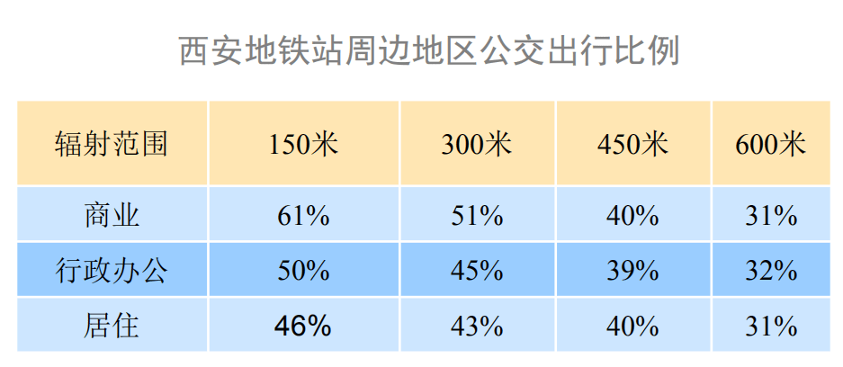 根据西安的调查结论,公共交通出行比例达到60.25%,鉴于西咸区位的特殊性及咸阳轨道交通准备起步,预计两条轨道交通建成后其分担比例在12%左右,公共交通分担率在40%左右。