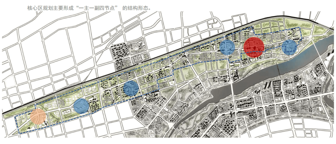 核心区规划主要形成“一主一副四节点” 的结构形态。