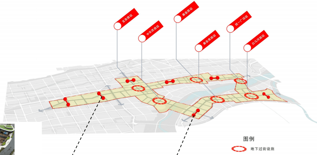 地面过街设施完善地面过街标志标识设施,合理地设置斑马线,完善交叉口灯控系统;建立完善舒适的无障碍系统。地下过街设施结合各地铁站通道和地下商场等设施建设。