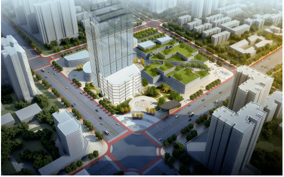 该节点位于人民中路与秦皇北路道路交叉口东北角,作为商业步行街来打造,建筑风格为现代简约,建筑层数3-6层,相邻建筑之间使用架空通廊连接,商业街主出入口分别沿人民中路、秦皇北路设置。