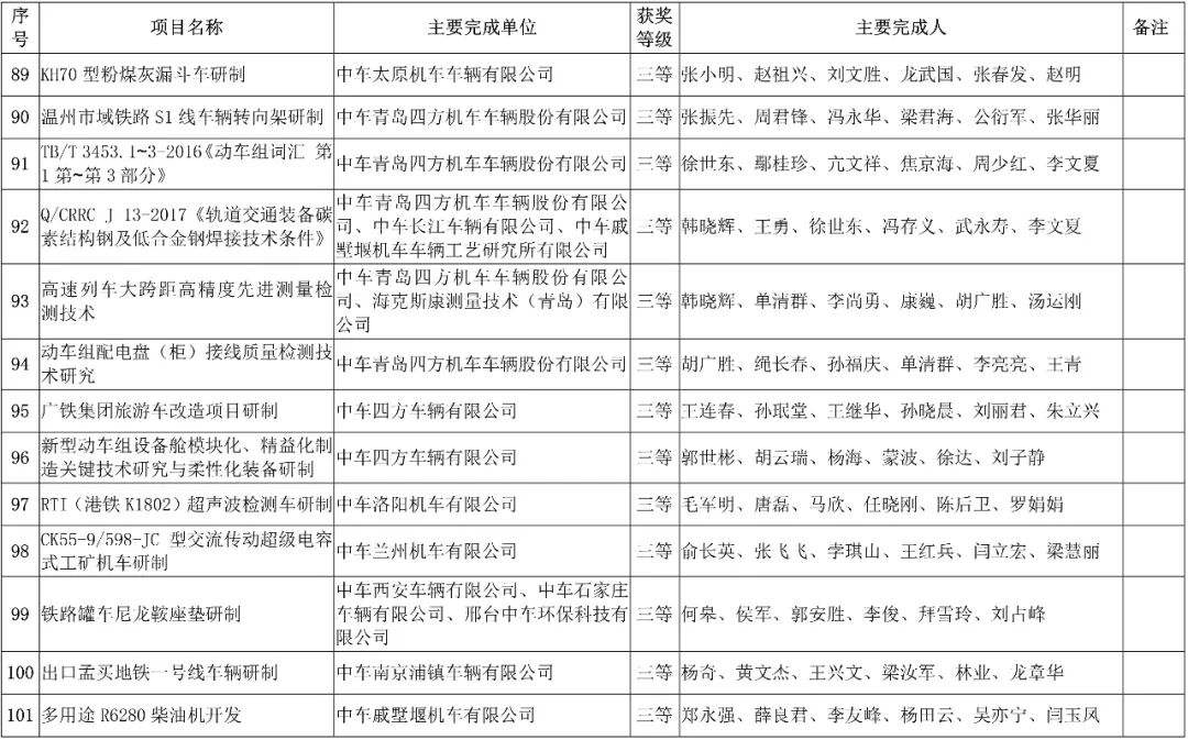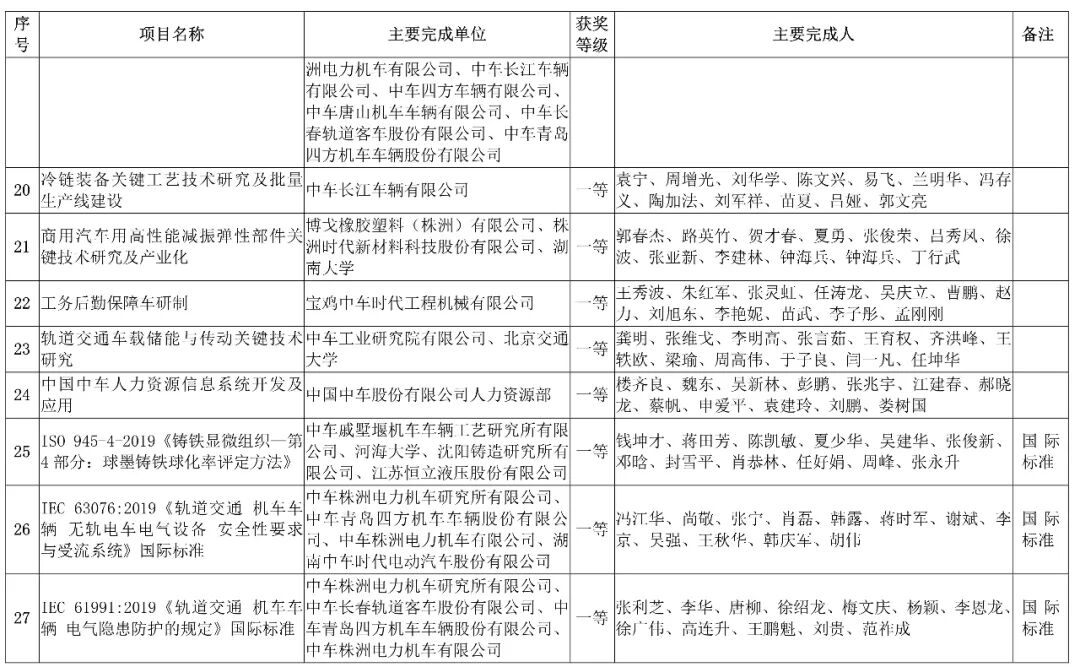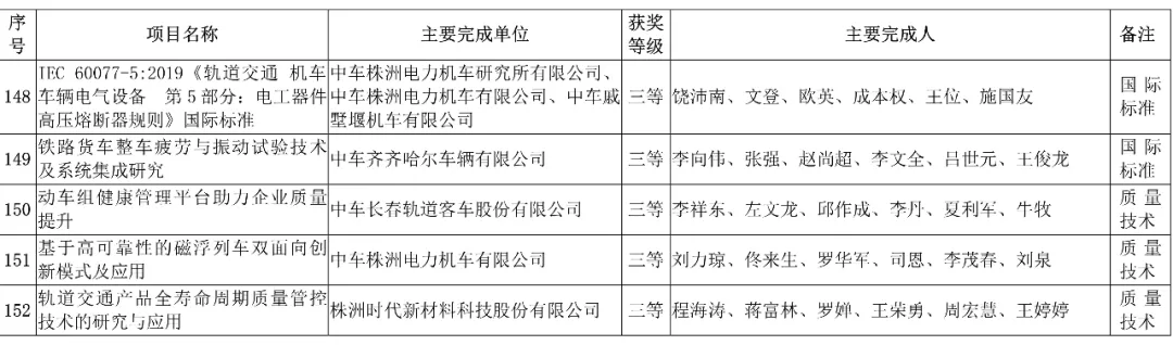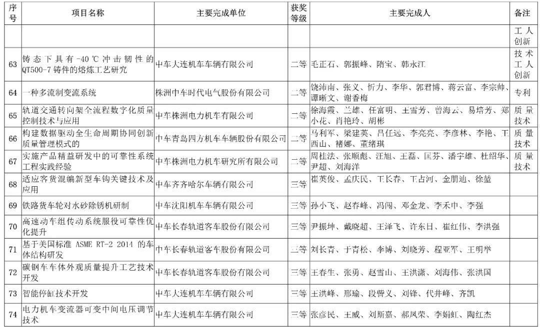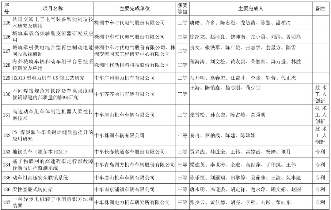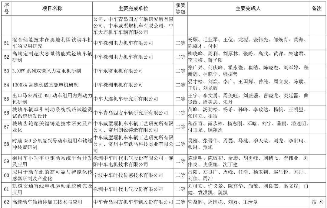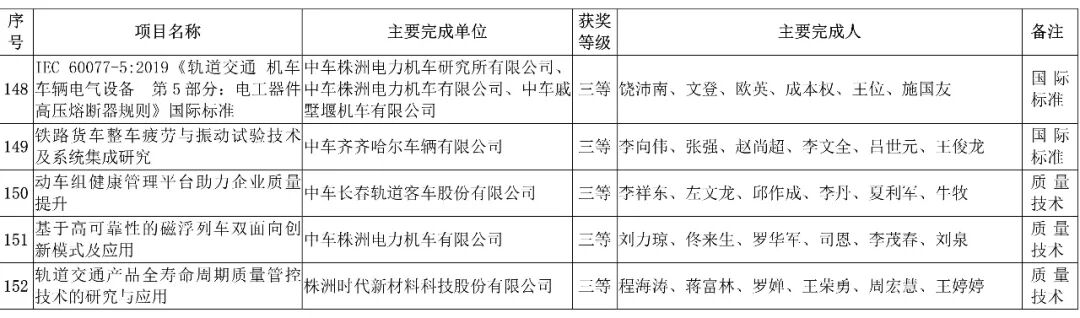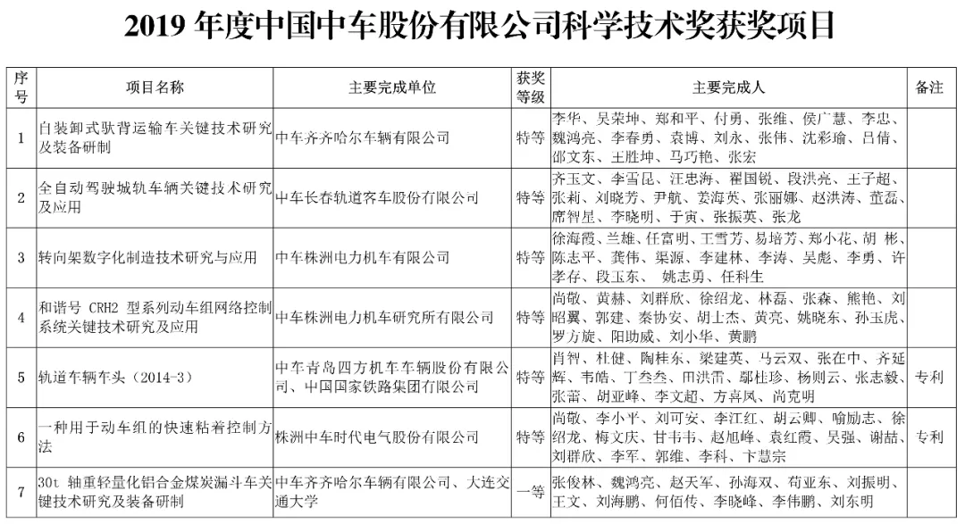 会上,中国中车股份有限公司,授予152项科技成果”2019年度中国中车科学技术奖“。其中特等奖6项、一等奖21项、二等奖40项、三等奖85项。