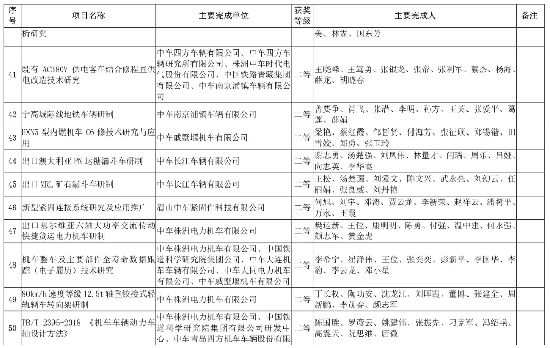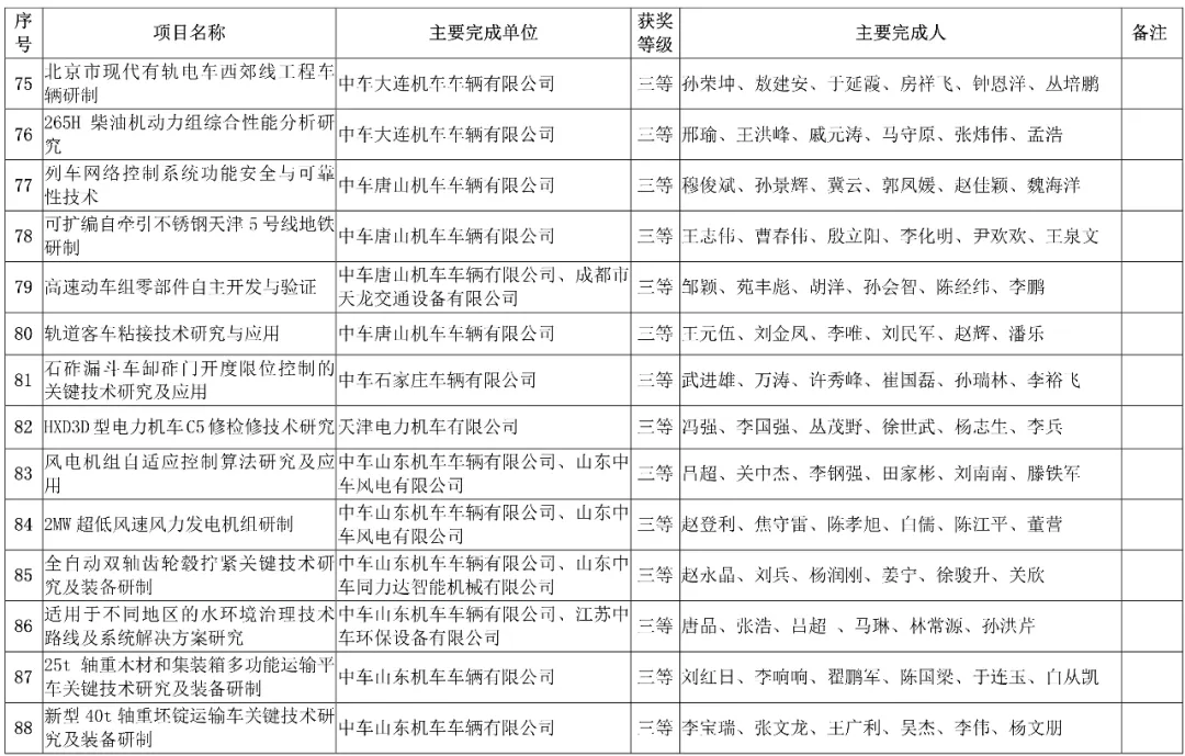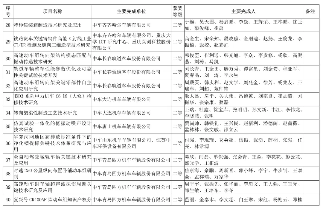 主要完成单位:中车青岛四方机车车辆股份有限公司、中国国家铁路集团有限公司