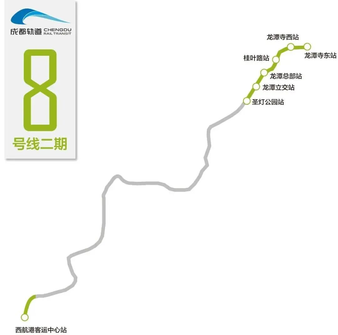 8号线二期工程为第四期建设规划线路之一,二期工程作为一期工程的延伸线,分为西南延和东北延两段,线路设置7个站,1个停车场。线路建成后将进一步延伸双流区、成华区轨道交通覆盖范围,加强西南与东北的交通联系。