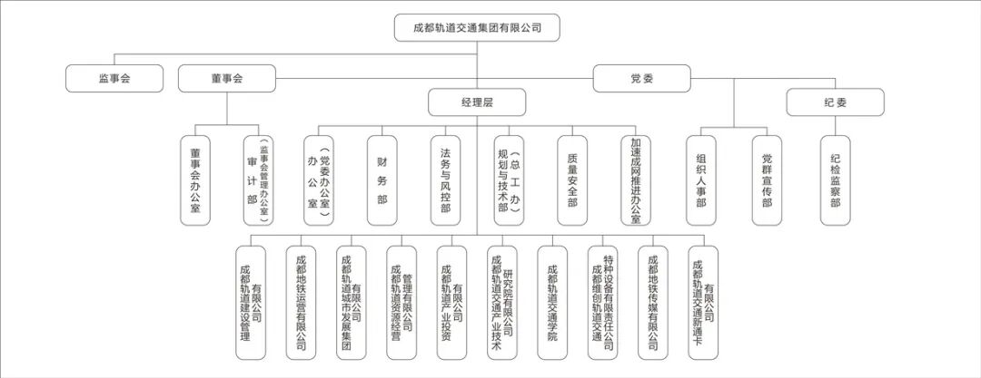 成都轨道交通集团有限公司成立于2004年,是成都市从事轨道交通投融资、建设、运营管理、物业开发和产业经营的大型国有企业,注册资本67亿元,资产总额超过2000亿元,员工2万余人。集团设11个部门,10家子公司。目前,已开通8条线路(含有轨电车)、运营总里程达到341公里,在建里程达到335公里。