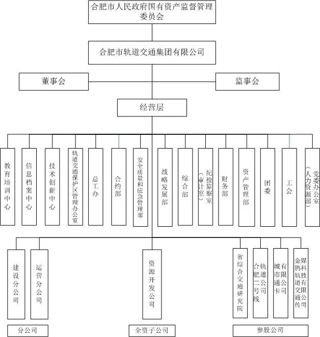 2009年6月,经市政府批准,合肥城市轨道交通有限公司正式成立。公司属国有独资公司,由合肥市建设投资控股(集团)有限公司投资设立,注册资本伍拾叁亿五仟玖佰万元。与合肥市轨道交通建设办公室合署办公。公司主要从事城市轨道交通建设、运营及沿线相关资源开发。