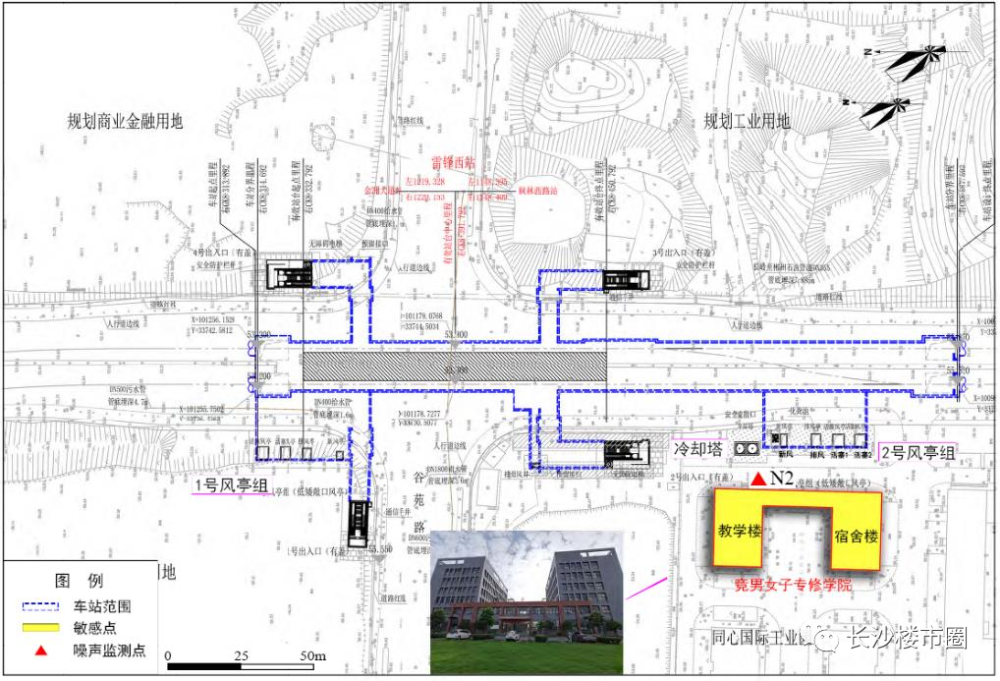 樱花路站位于樱花落与雪松路交叉路口西侧,现状周边为待开发用地。