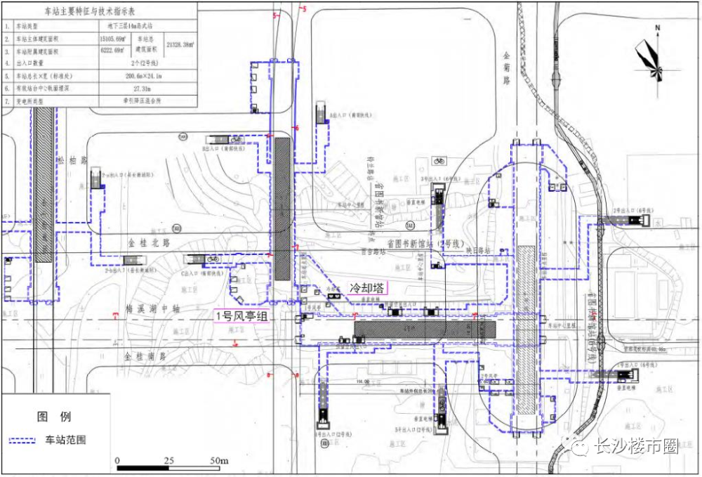 省图书新馆站位于金菊路和梅溪湖中轴广场交叉口处,与在建的地铁6号线在此交汇,S2线、岳长衡城际也在此换乘。