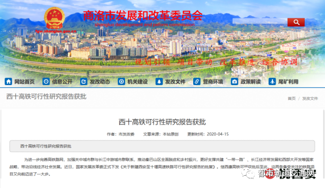 据商洛市发改委网站消息,国家发展改革委近日正式下发《关于新建西安至十堰高速铁路可行性研究报告的批复》,标志着西十高铁距离正式开工又近了一步。