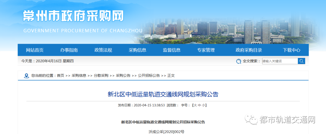 常州沃成招标有限公司受常州国家高新区(新北区)住房和城乡建设局的委托,根据《中华人民共和国政府采购法》等有关规定,现就新北区中低运量轨道交通线网规划进行公开招标,现邀请合格投标人参与投标: