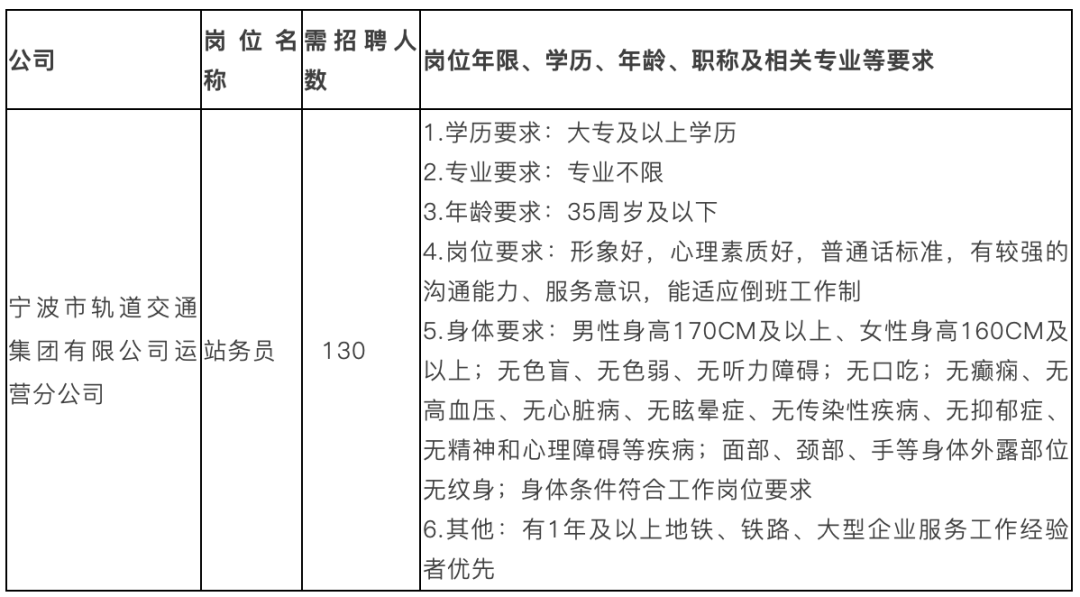 (三)拟录用人员入职时间根据宁波轨道交通新线工程建设进度、工作需要分批次安排。
