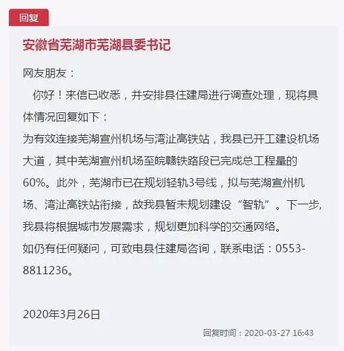 在2019年8月,芜湖自然资源和规划局就针对大家关心的“轨道交通3号线”最新进展作出了回应: