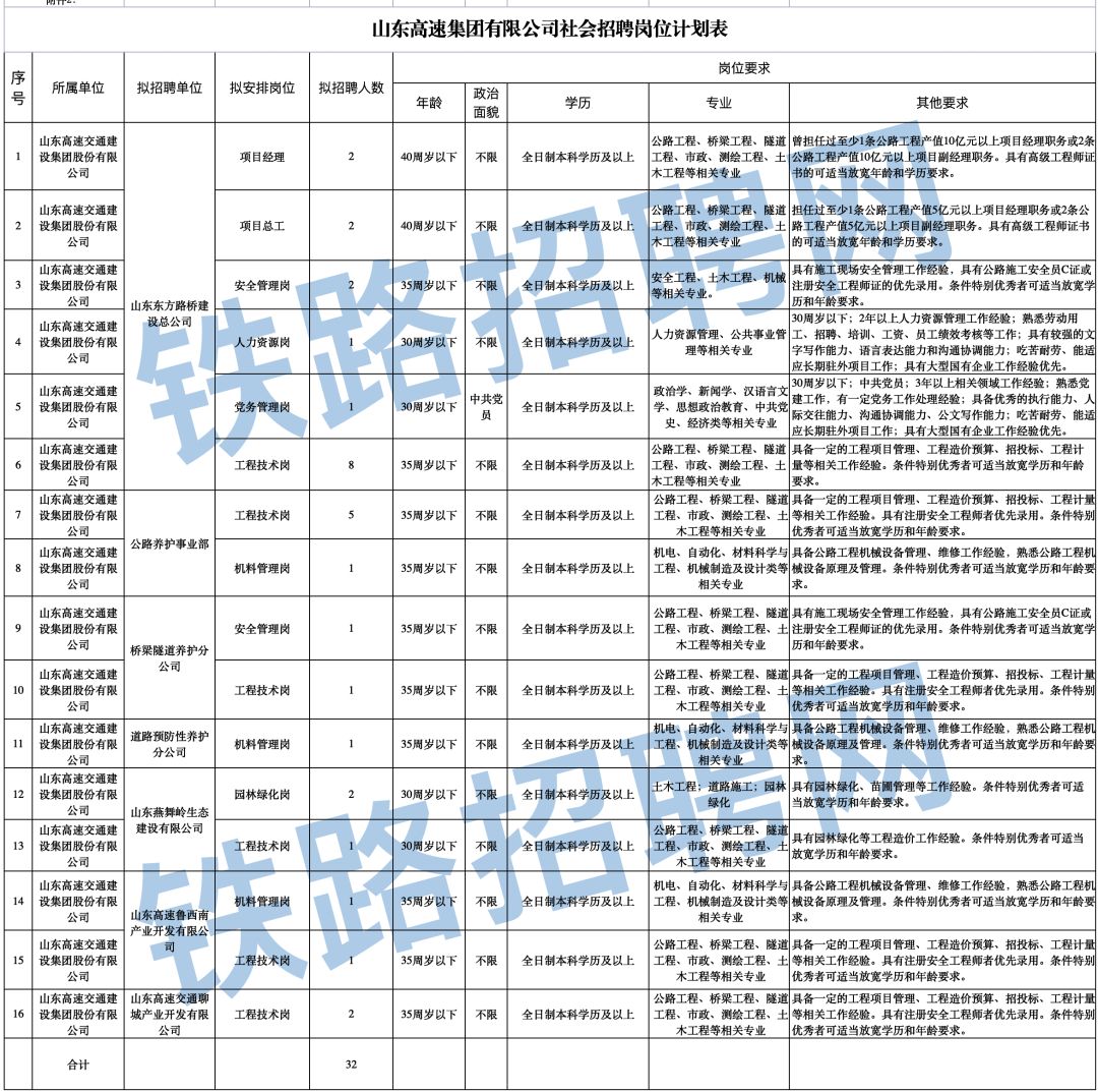 1、32人!山东高速交通建设集团股份有限公司招聘公告