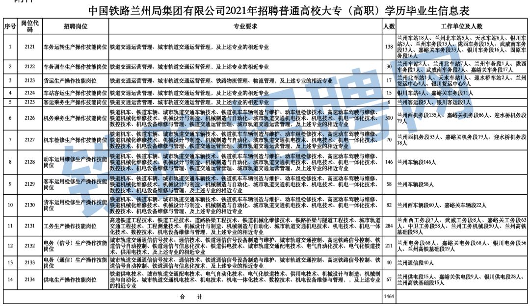 2、1464人!中国铁路兰州局集团有限公司2021年招聘普通⾼校毕业⽣公告(⼆)