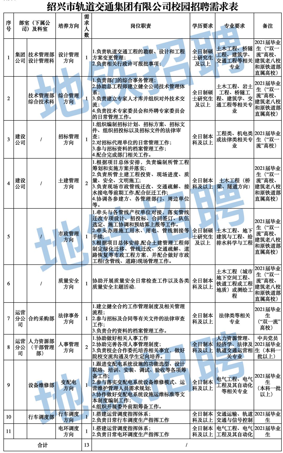 具体招聘岗位及要求详见《绍兴市轨道交通集团有限公司校园招聘需求表》(附件1),其中“双一流”建设高校及建设学科名单、建筑类老八校和原铁道部直属高校名单详见附件3。