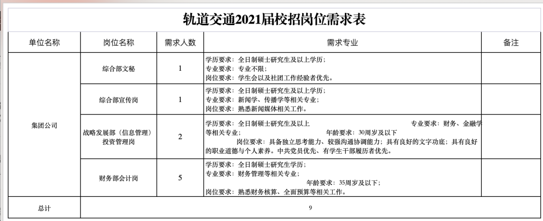 因工作需要,宁波市轨道交通集团公司特招聘2021届应届毕业生,具体要求详见附表。