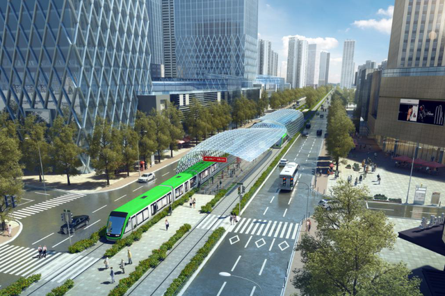 作为里水镇里湖新城的十大基建项目之一,南海区有轨电车里水示范段及配套市政道路工程,总投入约39亿元。其中有轨电车投资额约19亿元,全长约9.9公里,共设13座车站,始于里湖新城,沿环镇北路、草场工业路、里广路,止于广州地铁12号线里横路站;配套市政道路工程总投入约20亿元,包括新建环镇北路以及改造提升草场工业大道和里广路。